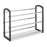 (More customer reviews)I bought this shoe rack because it's expandable and that's what I needed.I'm not incredibly impressed with the overall design, but it was easy and quick to put together.My biggest problem with it is that it doesn't do a good job supporting my shoes since it just provides two steel pipes to put the shoes, which doesn't work with high heels.On top of that, I have a fairly small shoe size and even some of the wedged shoes don't stay on it because the pipes are too far apart and my shoes fall right through.I would say it's best suited for men's shoes, which are all flat and big in length.