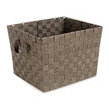 Tidy up those odds and ends before they become clutter with our handy storage tote. Our Woven Large Java storage tote by Whitmor is made of durable polypro strapping which makes it easy to wipe clean. The frame is made of epoxy coated steel which makes the tote sturdy. Both stylish and functional for all your storage needs.
