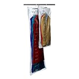 Triple your closet space in seconds with our hanging space bags! Airtight, waterproof and reusable; these space bags protect against moths, dust, mildew and odors! Simple to use - hang your clothes without even taking them off their original hanger, vacuum and store! Kit Includes: Suit Size: 27 3/4 Inches x 41 Inches - Holds up to 5 suits or 10 shirts/pants Dress Size: 27 3/4 Inches x 56 3/4 Inches - Holds up to 10 dresses or coats