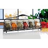 6 jars in a beautiful metal carry or countertop rack! (Approx) 2 ounce jars! Capacity will vary by density of spice used!Great display item - NOT for long term storage of spices - good for constant usage as jars are not fully airtight!