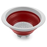 Reclaim storage space in your kitchen with this innovatively designed collapsible colander in red from Progressive International--a great choice for cramped kitchens. Perfect for rinsing fruits and vegetables, it has a 5-quart capacity, and its rigid plastic rim and raised feet make it easy to hold or set in a sink.